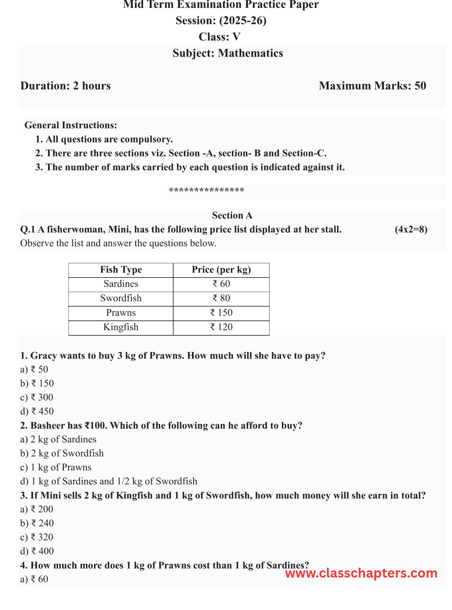 Class 5 Maths Mid Term Exam is one of the most important subjects in Class 5, as it strengthens logical thinking, problem-solving, and calculation skills. To support DOE and CBSE students, we are providing a Class 5 Maths Mid Term Exam Model Test Paper with solutions. This model paper is based on the latest NCERT syllabus and follows the CBSE exam guidelines, making it perfect for revision before exams.